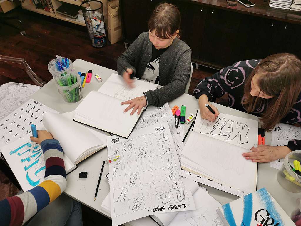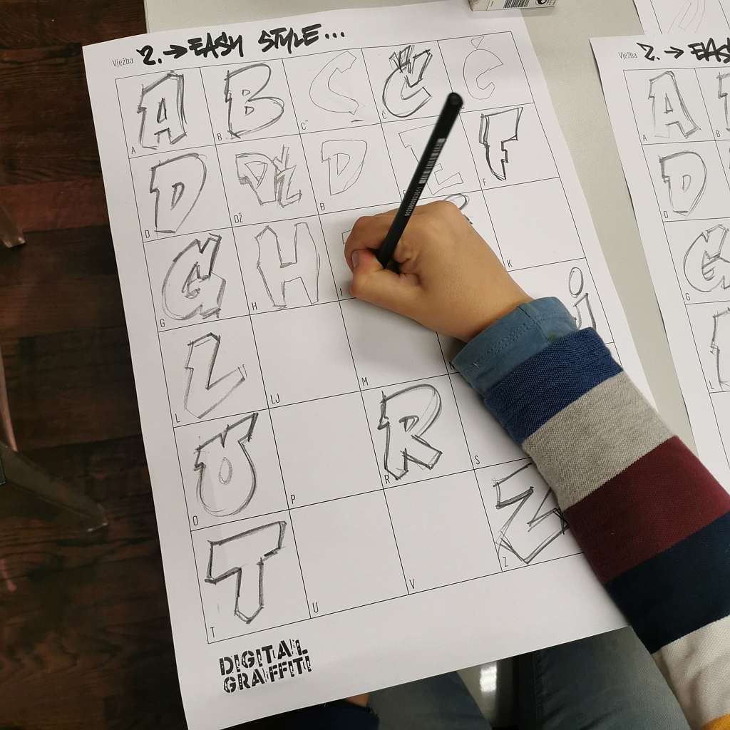 Umjetnička radionica namijenjena je djeci od 10-16 godina. Radionica je koncipirana na način da kroz tri stupnja djeca upoznaju graffiti i street art umjetnost. Svaki stupanj ima 4 termina u kojima održavamo radionicu.