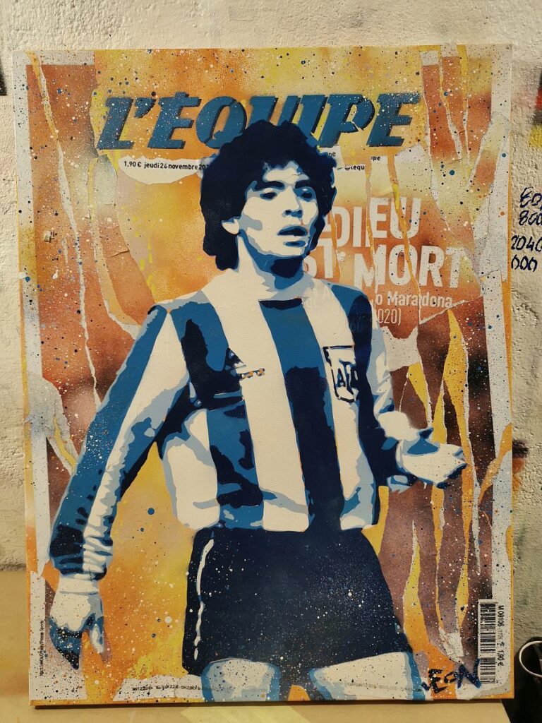Nekako u veljači sam počeo raditi na novim slikama, ispitivati nove tehnike, stvarati… pa je tako nastao i ovaj rad – Maradone – jednog od najboljih i najpoznatijih bogova nogometa…